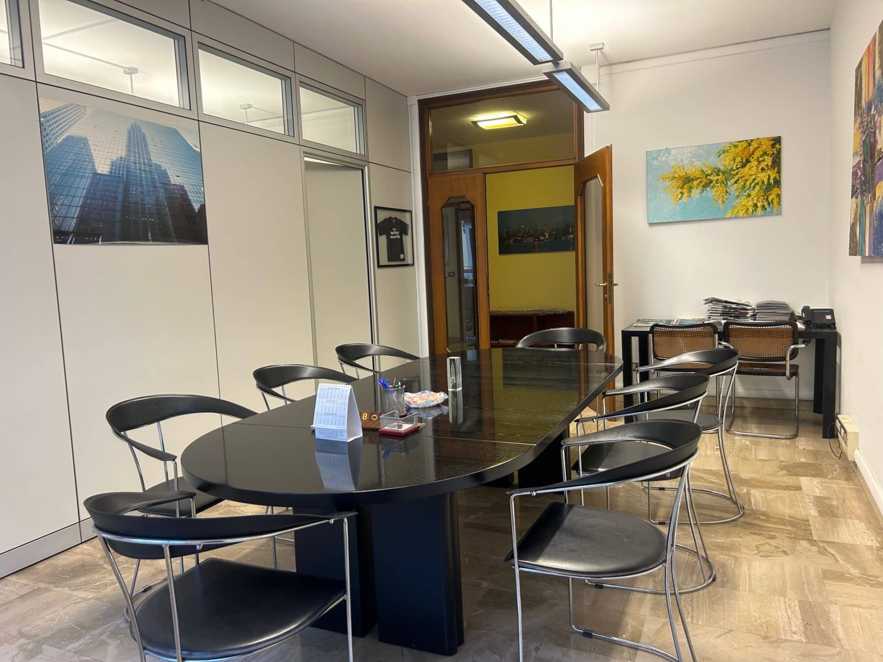 In palazzo signorile con portineria mezza giornata e doppi ascensori, ufficio mq 140 circa al primo piano, composto da 4 ampi locali, sala riunioni, doppi servizi, ampio ripostiglio, due balconi, cantina e solaio. Videocitofono. Aria condizionata. Possibilità arredi.